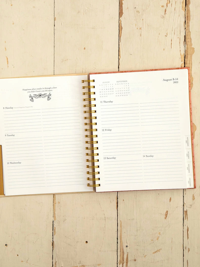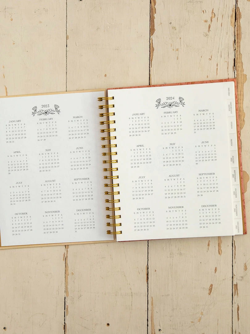 Our 17-Month Planner, starts in August 2022 and goes through December 2023. It comes with everything you need to stay inspired and organized all year long! Inside you will find monthly and weekly views, storage pockets, holidays, goals, fun stickers and an inspirational quote for each week of the year! It’s beautifully designed and is the perfect size to either keep at your desk or carry with you…you won’t want to plan another day without it!