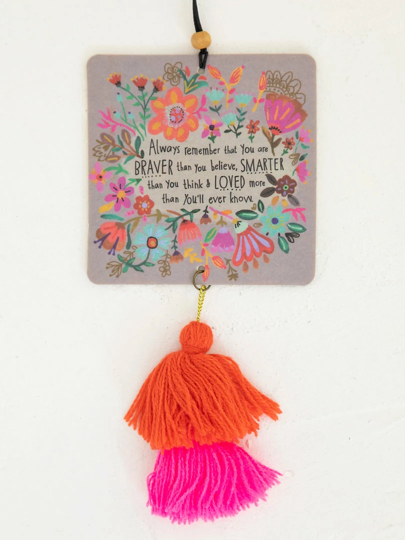 Let’s face it. Our cars can smell a bit musty… hang one of our uplifting Air Fresheners in your car to keep it smelling fresh! Each beautiful design is scented with a different essential oil. (See the “details” section for each scent.) Your car will smell soo good and you’ll get inspired each time you see it, since they’re each designed with one of our most-loved Chirps! You can also hang one in your closet or laundry room to freshen up the space or anywhere else in your home that needs a lift. It’s rare to find something that can smell this good AND make you smile at the same time!