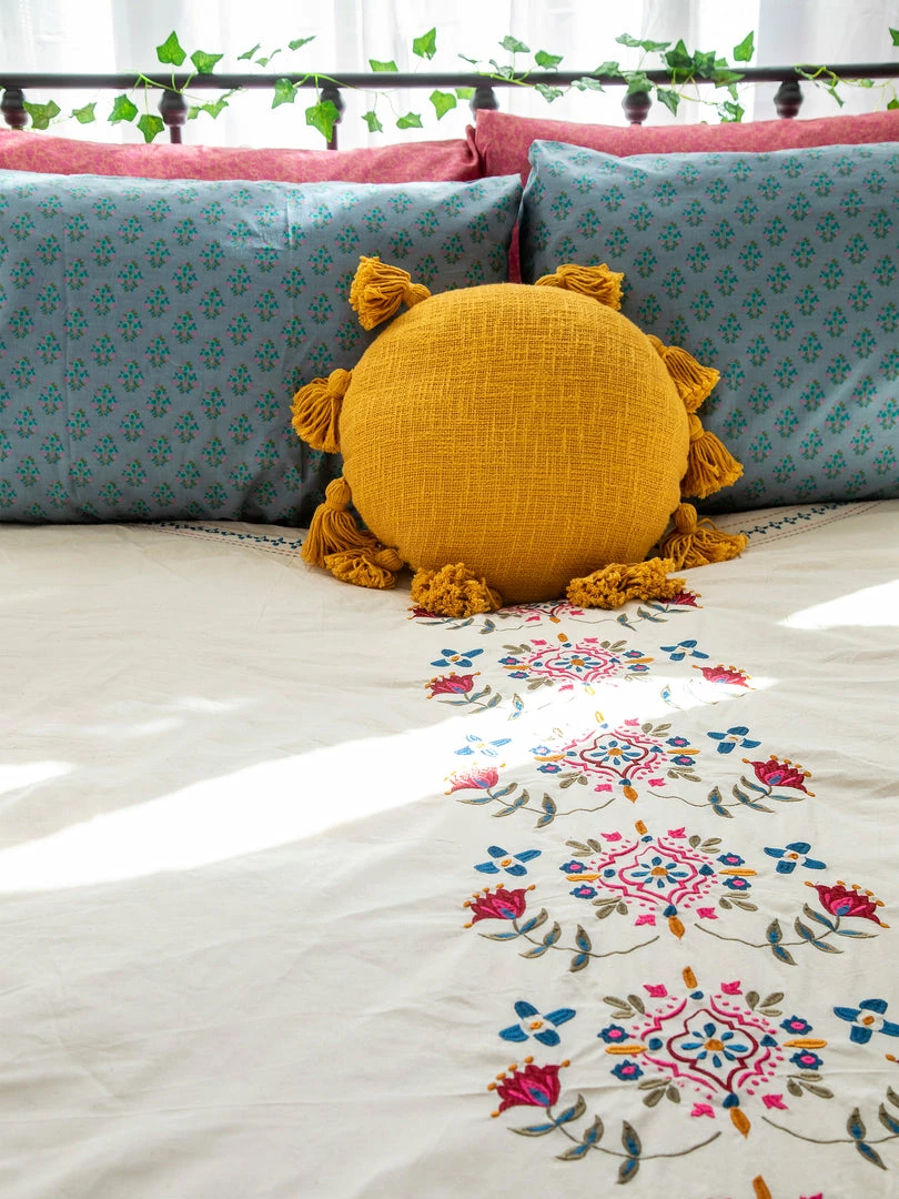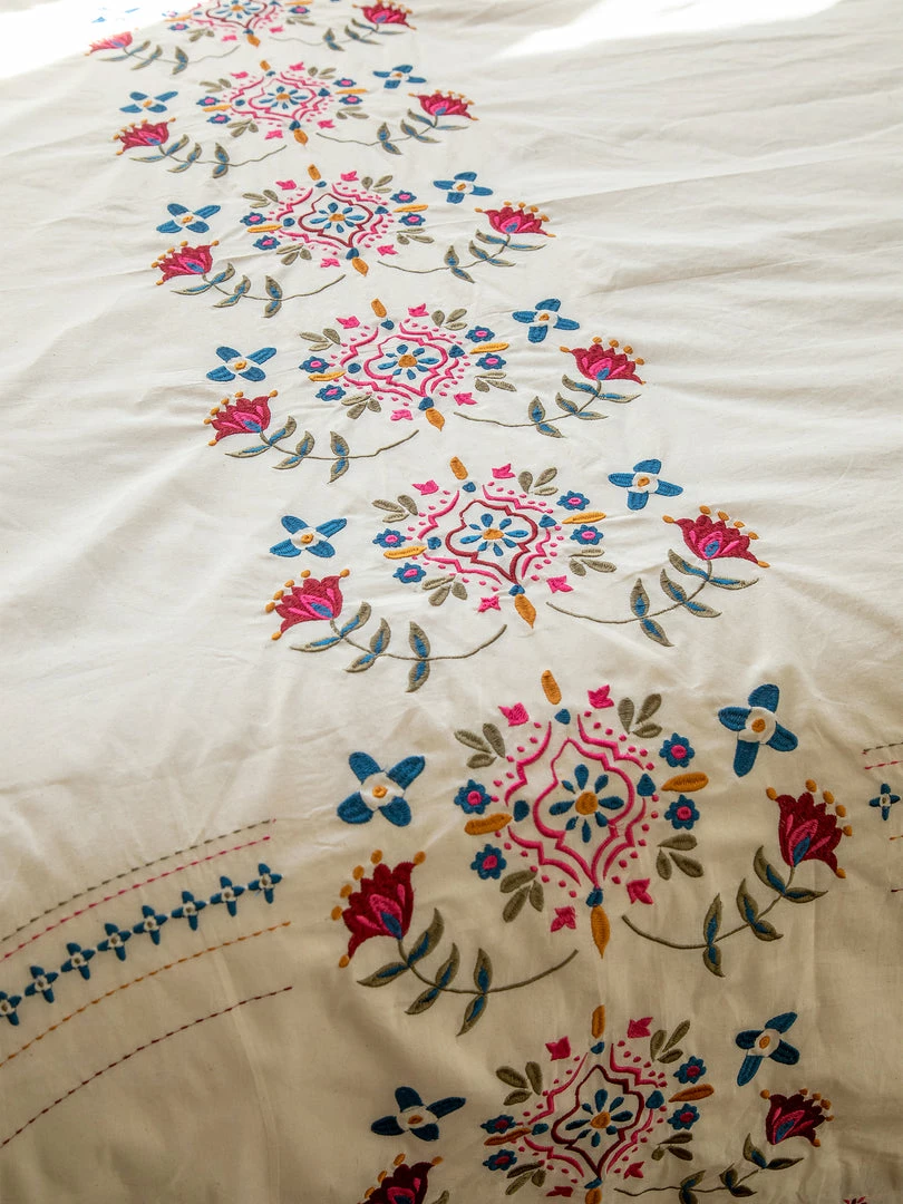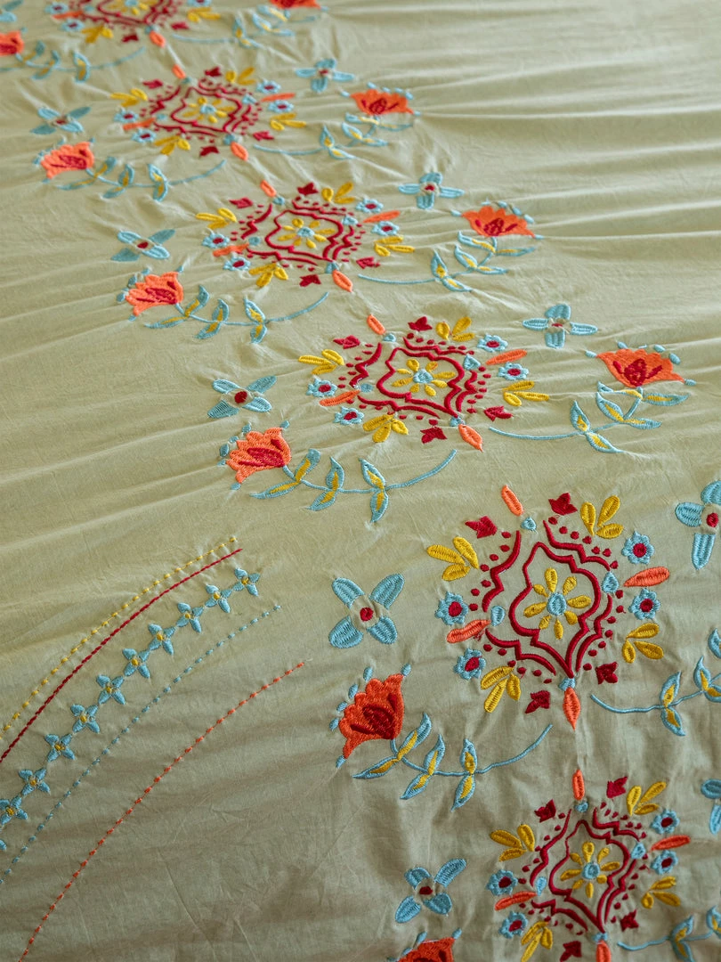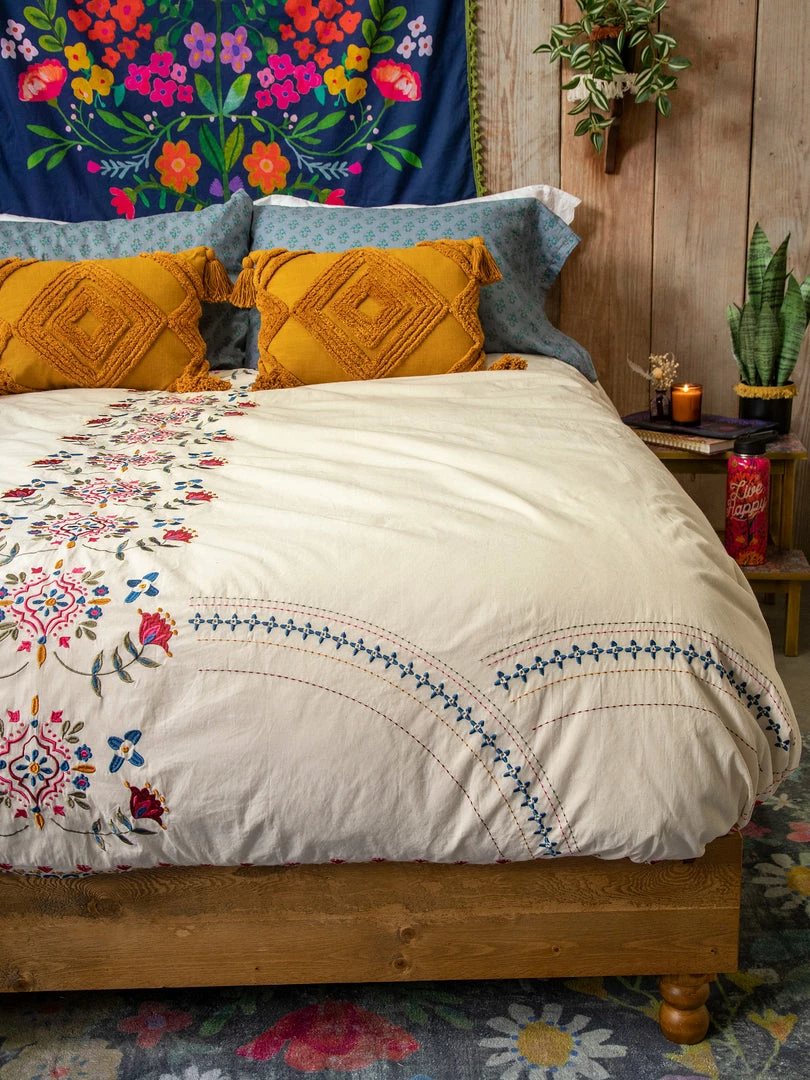 The Embroidered Coverlet is so beautiful! It’s a lightweight, embroidered king size coverlet that actually looks great on ALL bed sizes! Throw it on your bed or keep it folded at the foot for an extra layer of warmth and decoration… it will make your bedroom or dorm room come to life! We even like using it as a table cover, it’s just so pretty!