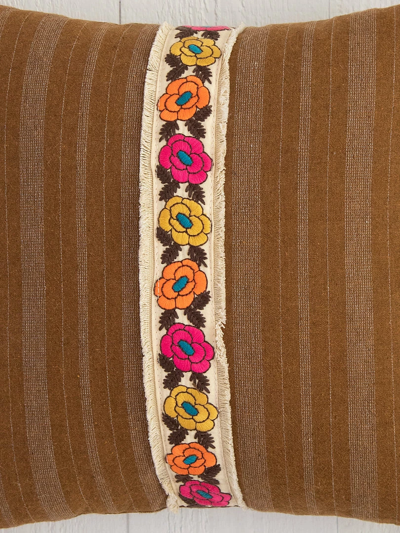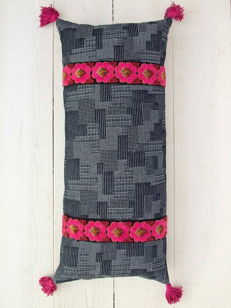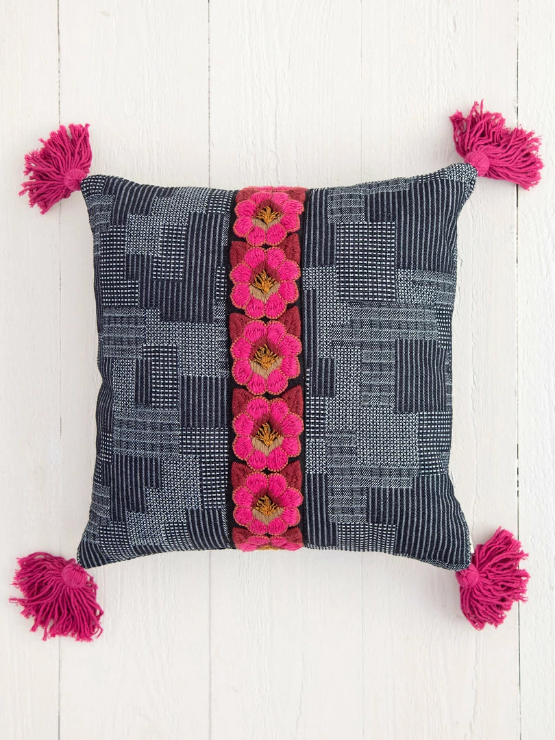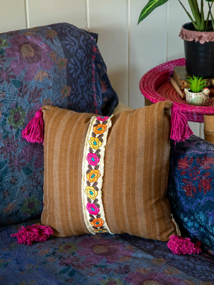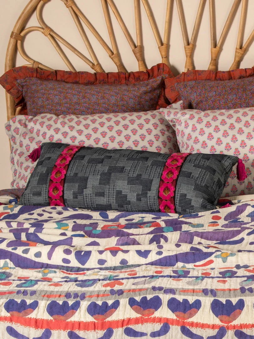 The Tesoro Pillow was inspired by our global travels and features a vintage look! It’s the perfect pop of color & texture to your bed, couch or chair. We love the embroidered trim and the fun tassels on the corners! It’s one of our favorites for sure!