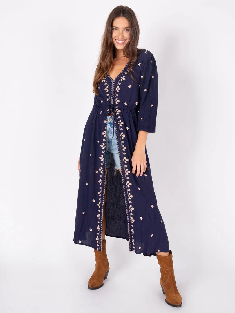 Easy dresses are the best…and the Brae Embroidered Midi Dress is definitely one with its feminine silhouette and beautiful embroidery detail. It’s flowy in all the right places, and features a tie waist to get you your perfect fit! We love the versatility of this dress…the hook and eye closure gives you the functionality of wearing it as a dress or kimono!
