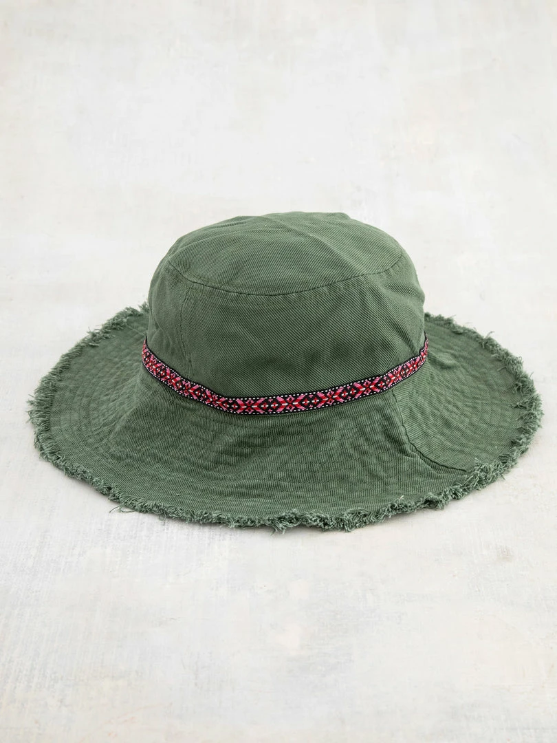 Our distressed bucket hat is simply perfect for the girl-on-the-go! The washed cotton is so soft and floppy, making it completely effortless to style and easy to wear! Our favorite part is the frayed edge detail, it’s so fun!