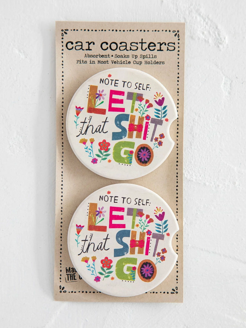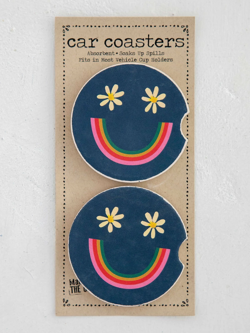 We all love bringing coffee to-go but hate sticky spills in our cupholders! Made of super-absorbent stoneware, our Car Coasters will catch any spills, drips, or dribbles. They prevent cupholder residue and soak up annoying condensation, all while adding a playful boho look to the inside of your car. This set of two Car Coasters is the ideal gift for new drivers or that friend with a long commute. We spend a lot of time driving and sitting in our cars, so make it a fun place to be! Check out the rest of our car collection here!