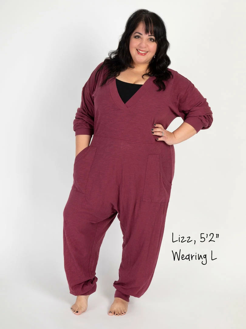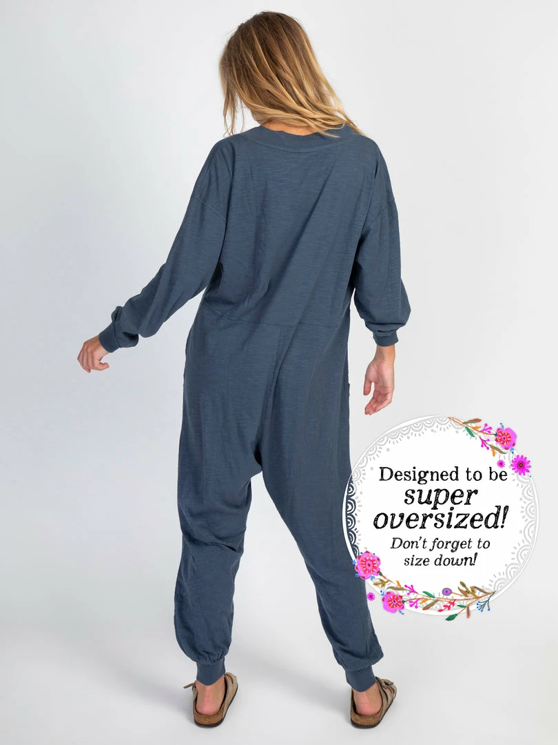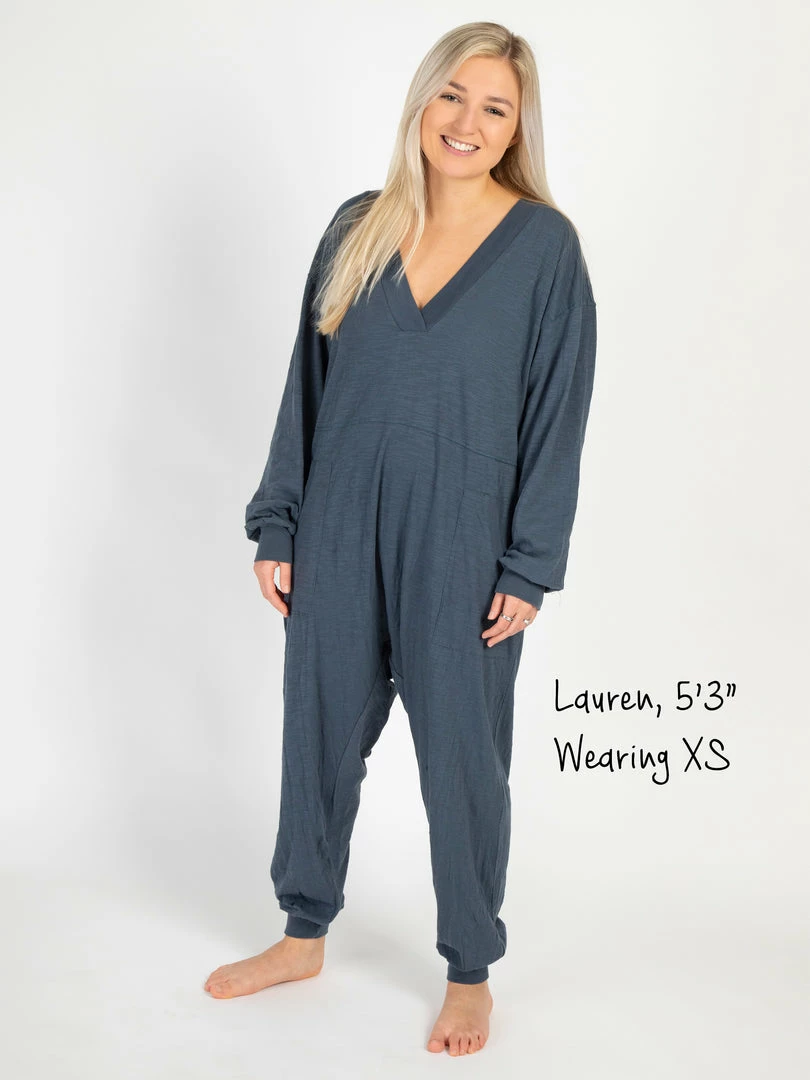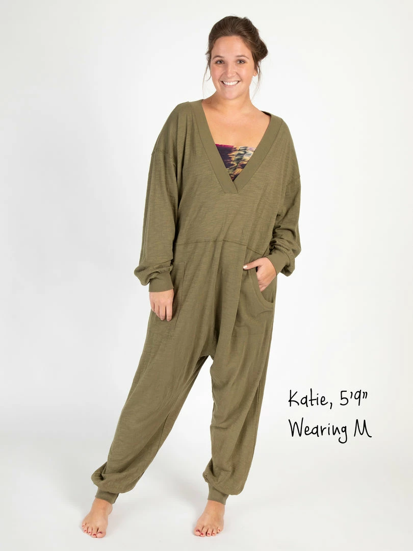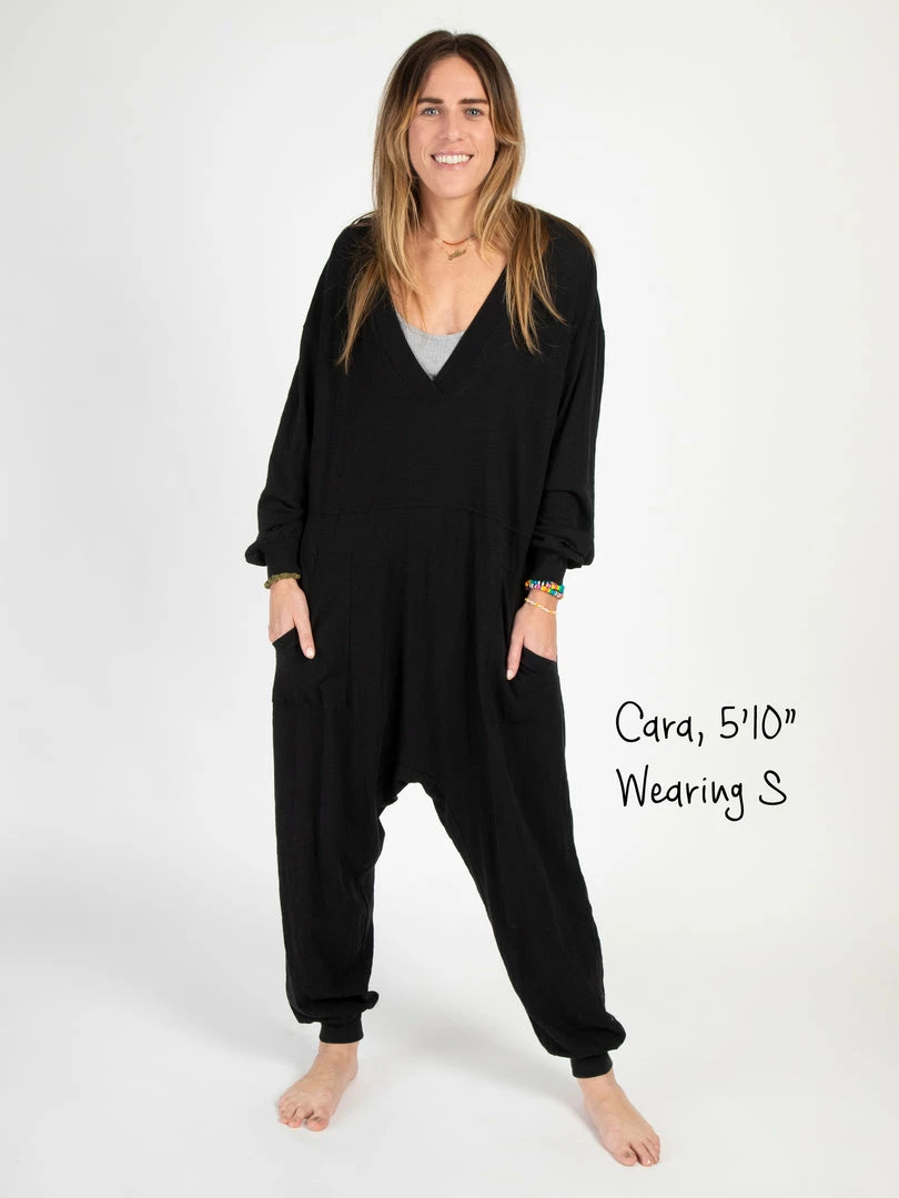Sometimes you need something to throw on that is not only the comfiest outfit ever, but also cute enough to rock at the grocery store, dog walk or coffee run! The Johnnie Jumpsuit was designed to be super oversized with a drop crotch & a slouchy COZY fit! The low v-neck is perfect to pair with a colorful bandeau, cami or lace bralette. If you’re unsure what size to get, we recommend to sizing down two sizes!