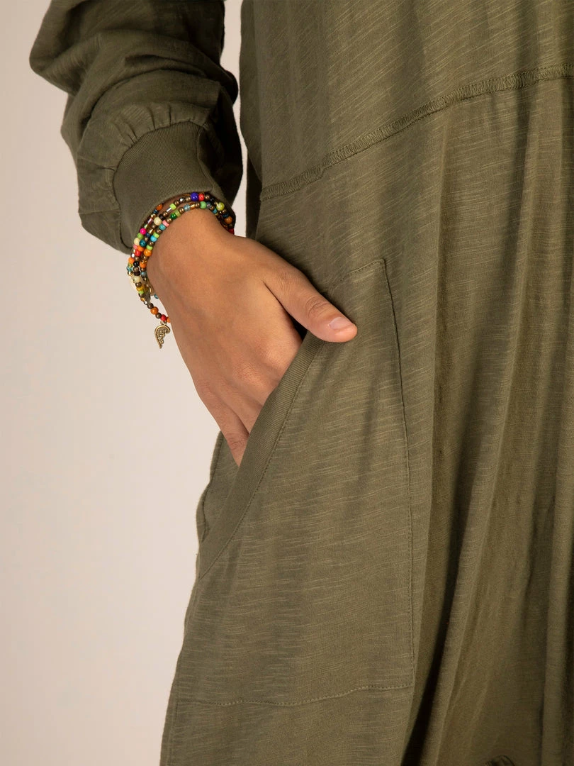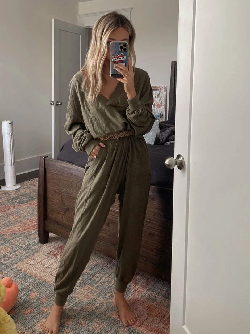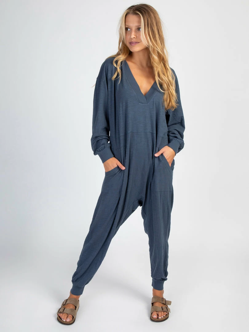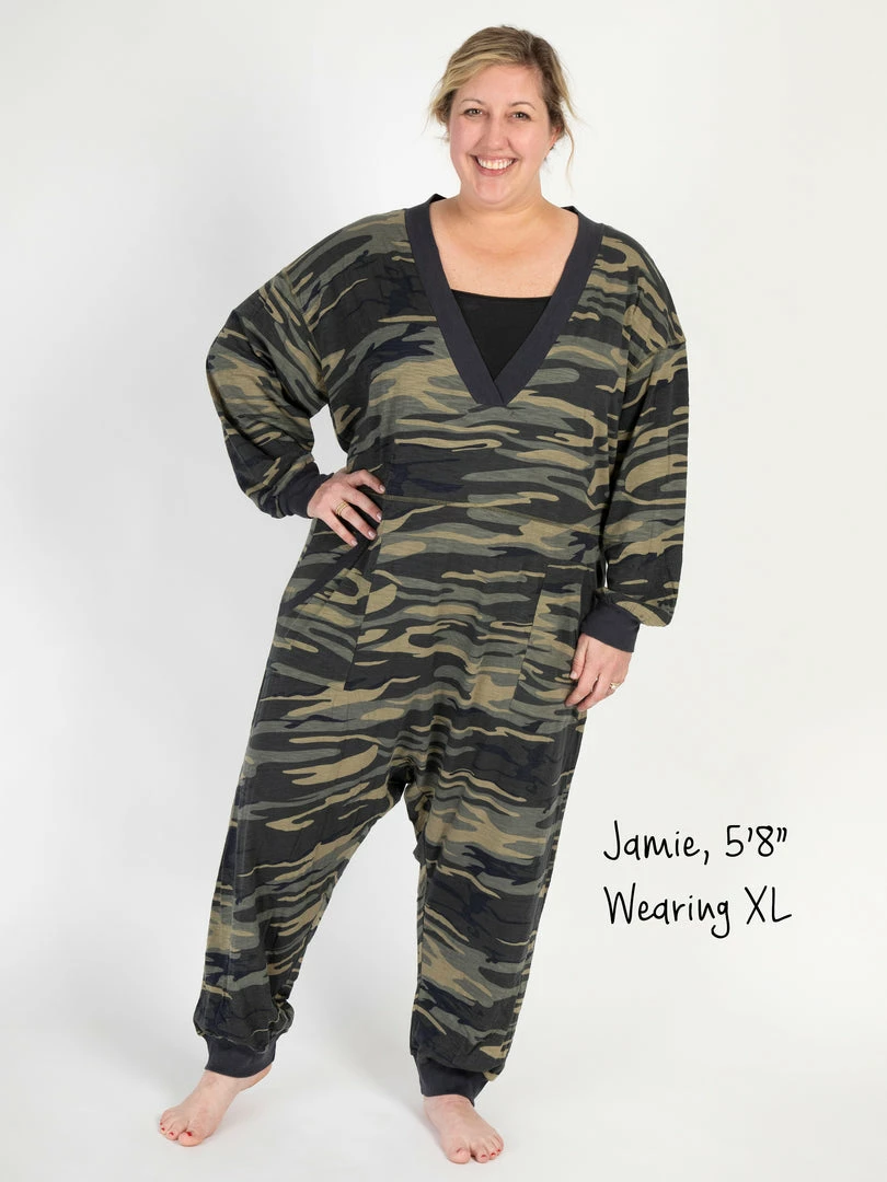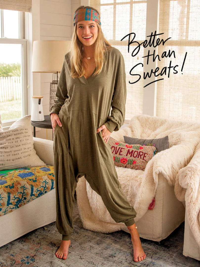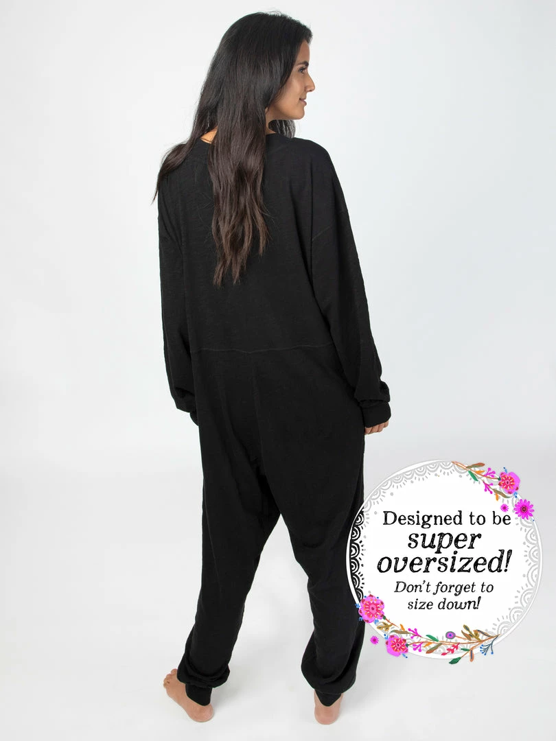 Sometimes you need something to throw on that is not only the comfiest outfit ever, but also cute enough to rock at the grocery store, dog walk or coffee run! The Johnnie Jumpsuit was designed to be super oversized with a drop crotch & a slouchy COZY fit! The low v-neck is perfect to pair with a colorful bandeau, cami or lace bralette. If you’re unsure what size to get, we recommend to sizing down two sizes!