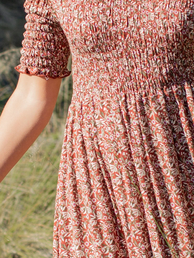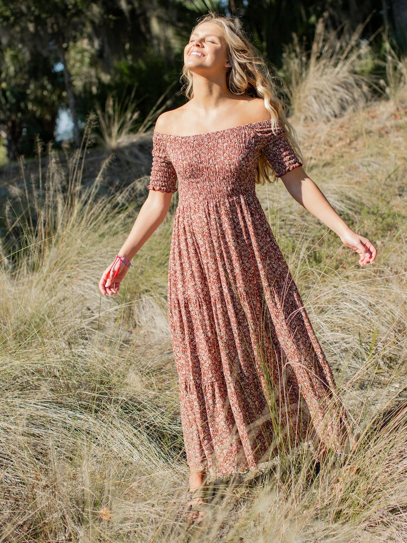 The most flattering dress we make! The Daisy Midi Dress features a fully smocked bodice, pretty floral print and tiers… making it so flowy and fun to wear! Plus, you can wear it on or off the shoulder for a different look! So comfy and easy to just throw on & go!