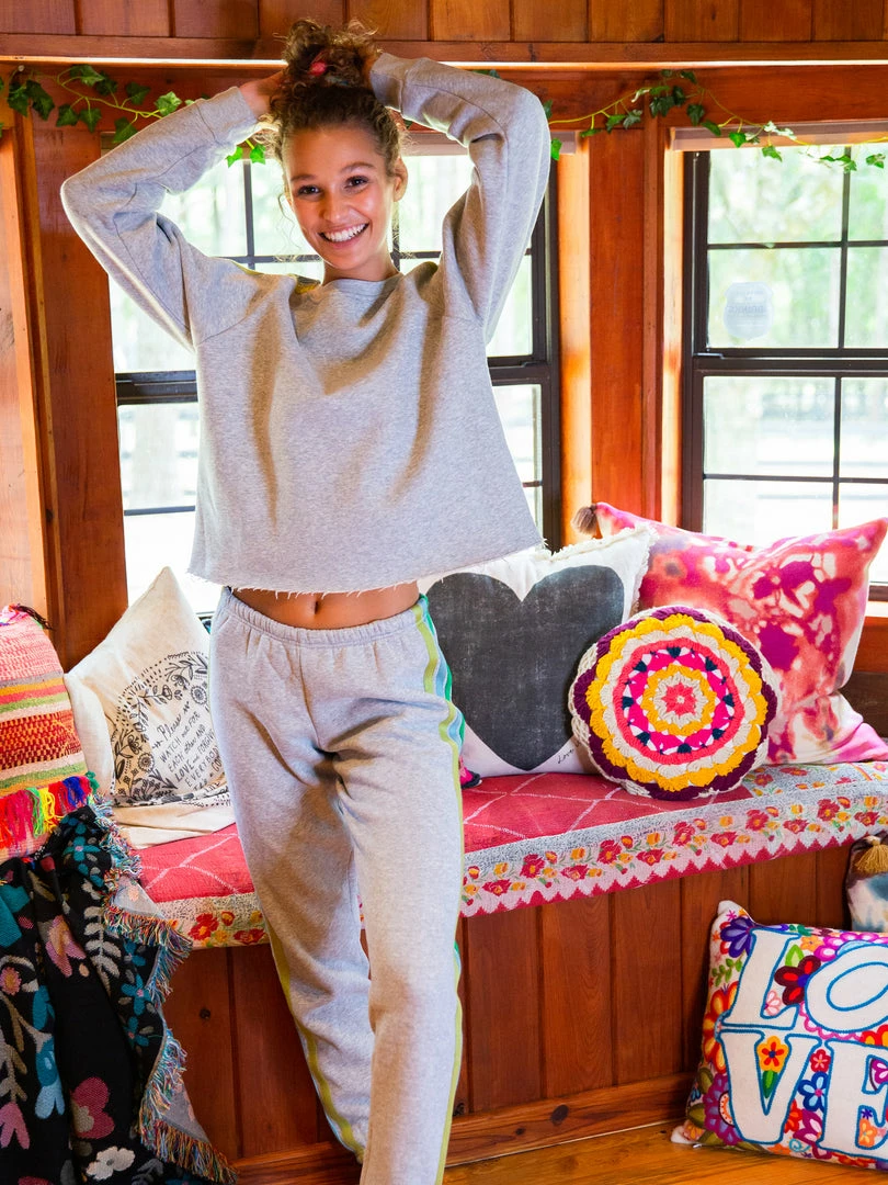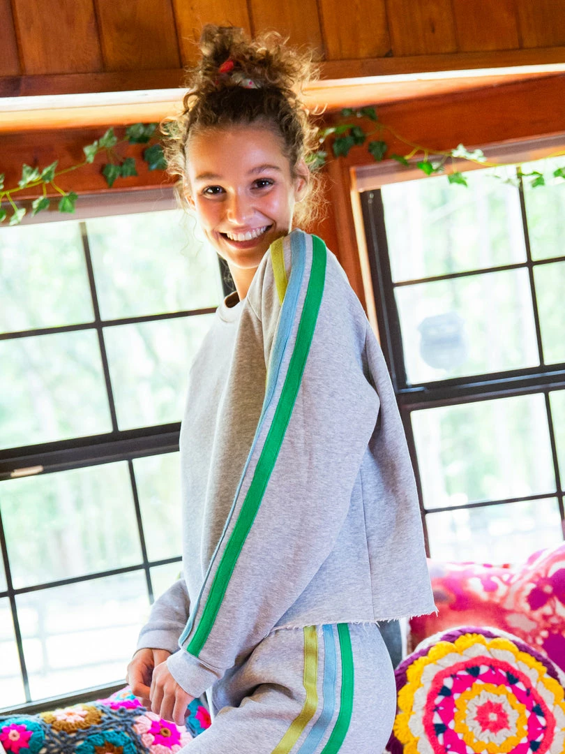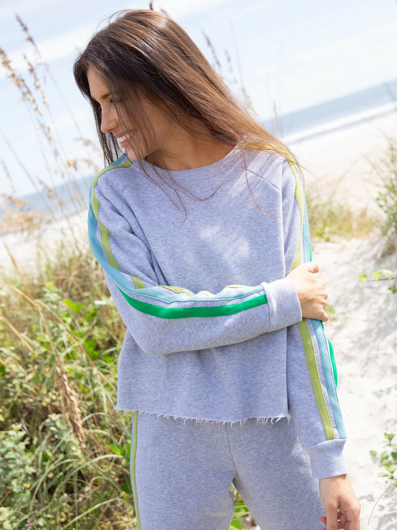 The comfiest sweatshirt ever! The Dawn Patrol has a super relaxed fit, a raw edge hem & fun contrast stripes down the sleeves! It’s perfect for lounging around the house or throwing on for adventures! Pair it with the Dawn Patrol Sweatpants to make it a cute set!