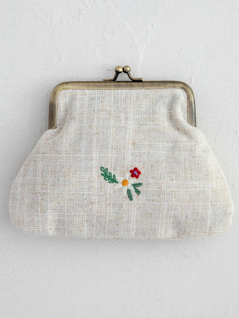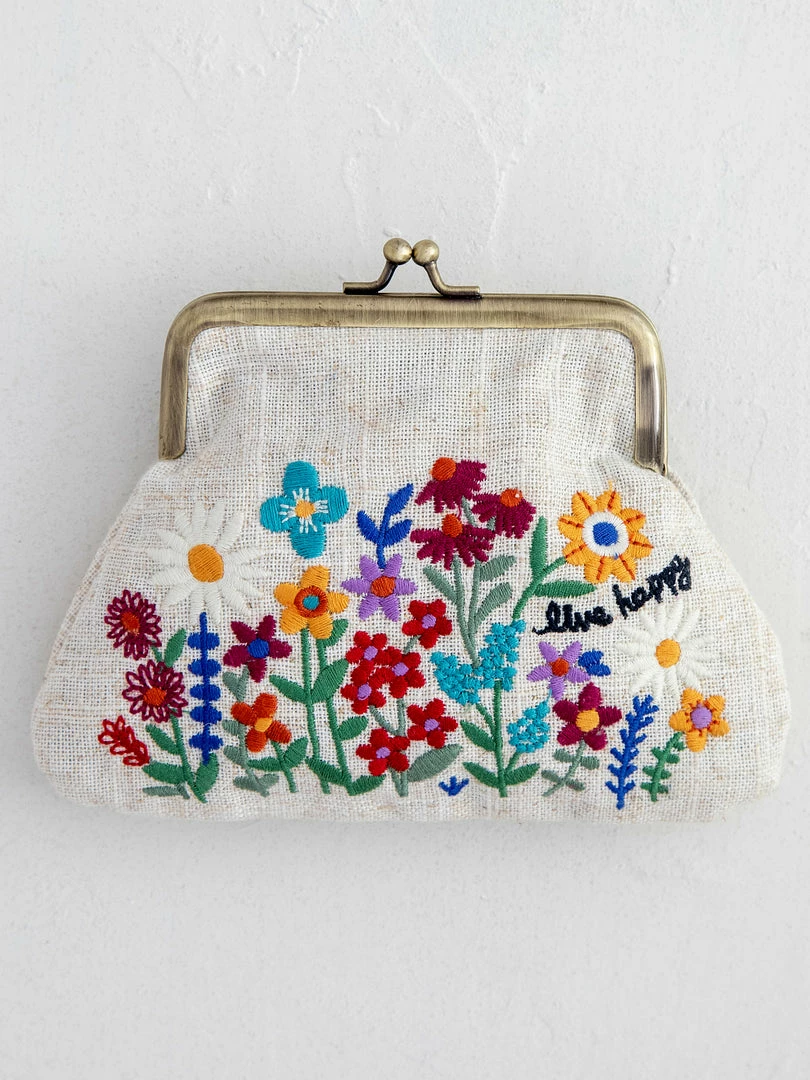 This cute Embroidered Coin Purse is perfectly sized for your coins, ear buds, jewelry & tiniest things! It features the prettiest embroidered design, a kiss lock closure and is printed inside! It’s awesome to just throw in your bag… you can always find those little things when you need them, no need for digging!