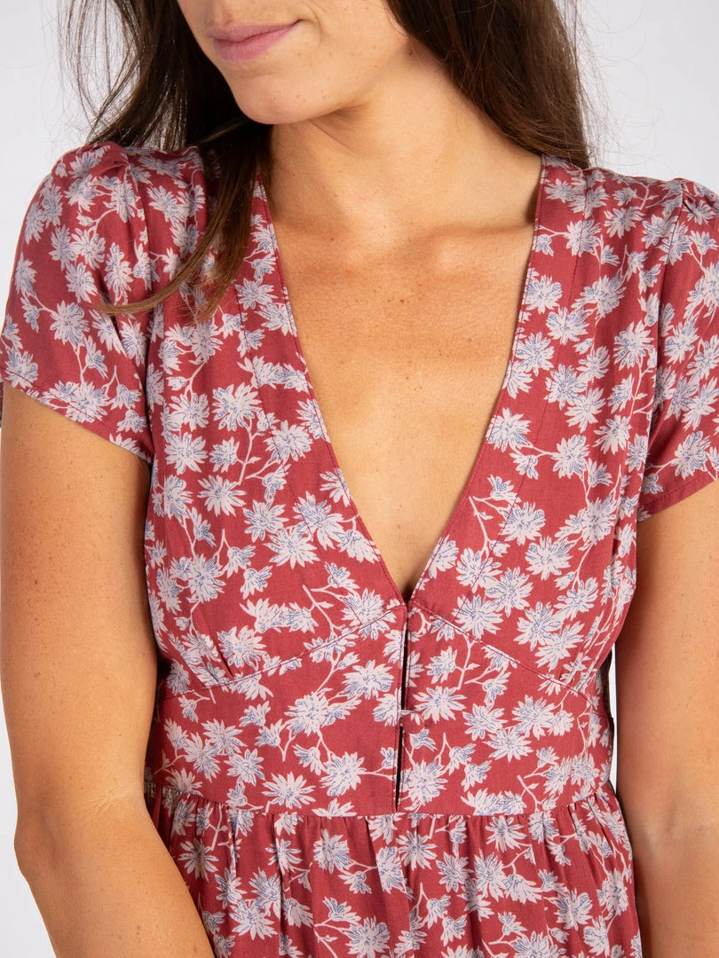 We love maxi dresses, and you can never have too many! The Evangeline Dress has a low cut v-neckline, dainty buttons in the front and short sleeves. Its comfy style is so flattering and easy to wear! You can dress it up or down for any occasion and the print is so pretty… you’ll want to wear it everywhere! Oh, and it even has pockets!
