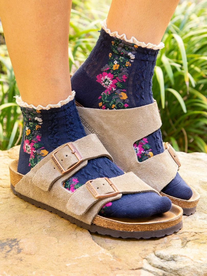 Cute & comfy socks make us happy! This Floral Ankle Sock Set features an ankle cut, a cute floral print and little crochet ruffles that look so cute peeking out of your shoes! They come as a set of three, each one a different color!