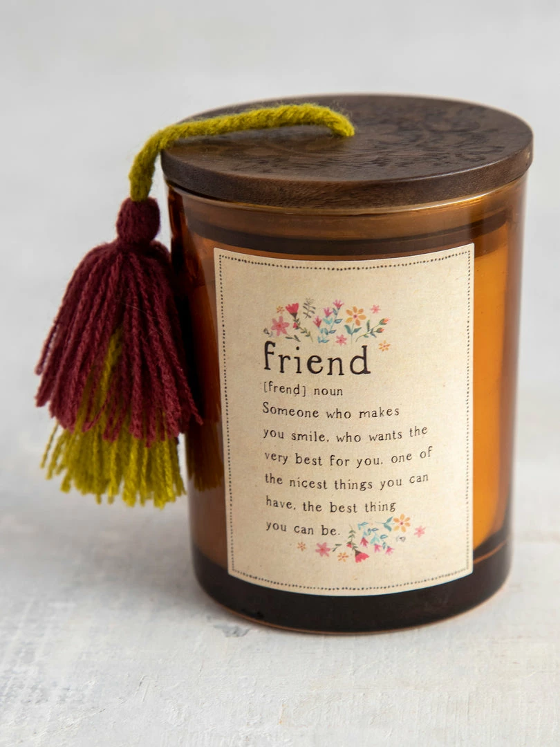 The Definition Candle is the perfect gift for someone special in your life, a sweet definition of who they are and what they mean to you. The candle burns for 50 hours and comes in a pretty amber glass jar with a wooden lid and fun tassel on top. Each one offers a different beautiful scent that will fill the room with happiness!