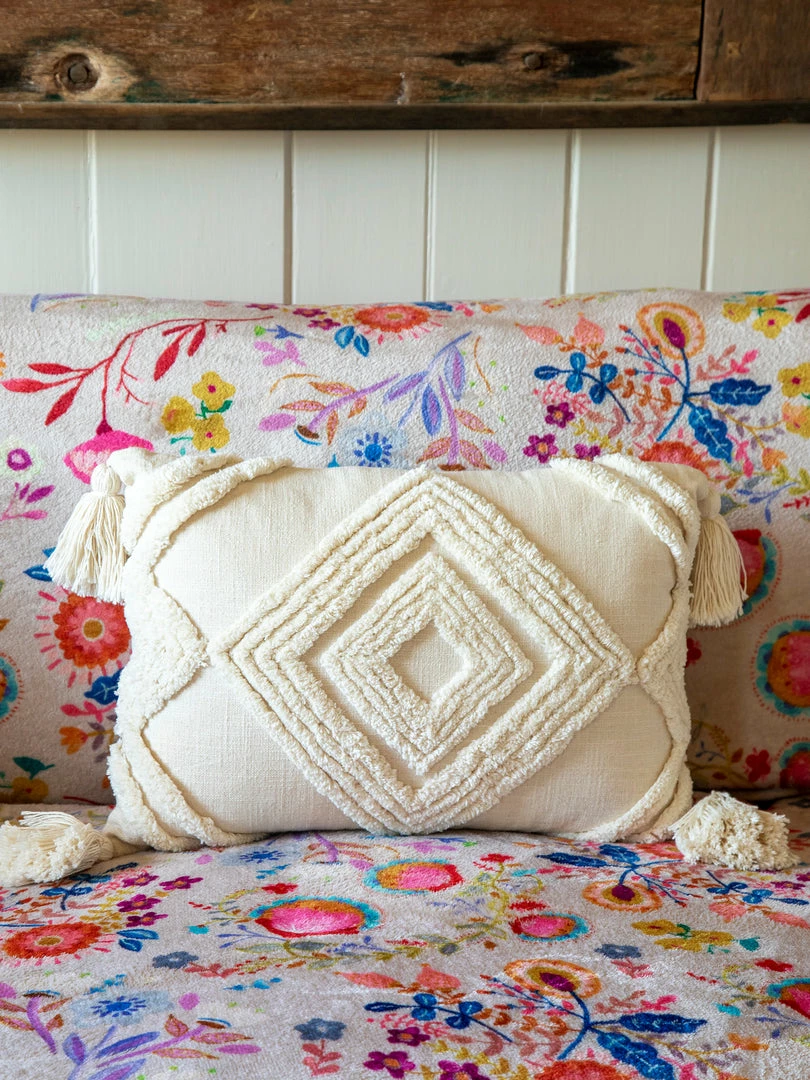 We’re obsessed with pretty pillows… and the Diamond Tufted Lumbar Pillow is just so beautiful! It’s made from 100% cotton, features tassels on each corner, and dynamic tufting that brings bohemian texture to your space! The solid colors make it easy to mix and match with other printed pillows and bedding!