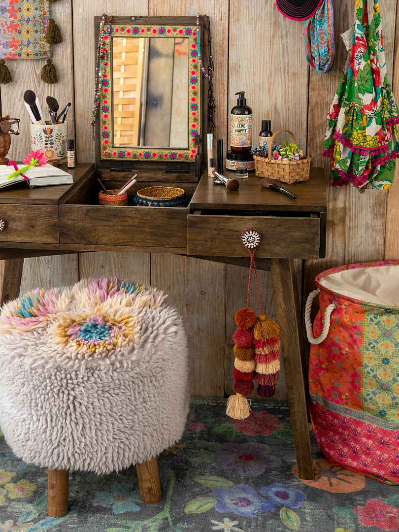 This Laundry Hamper adds bohemian vibes to any space. It’s fully collapsible, holds a full load of laundry and features a drawstring opening and sturdy braided rope handles so you can easily carry it right to the wash!