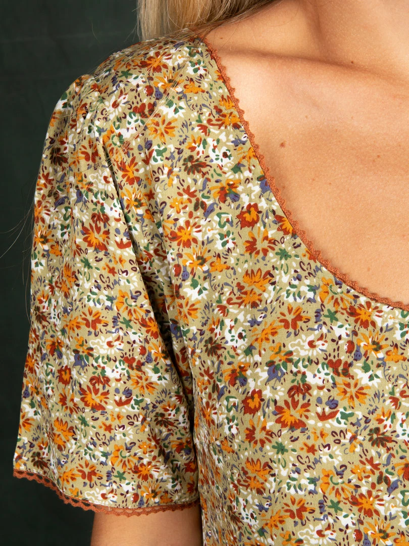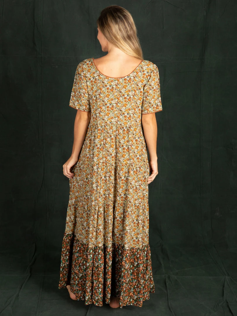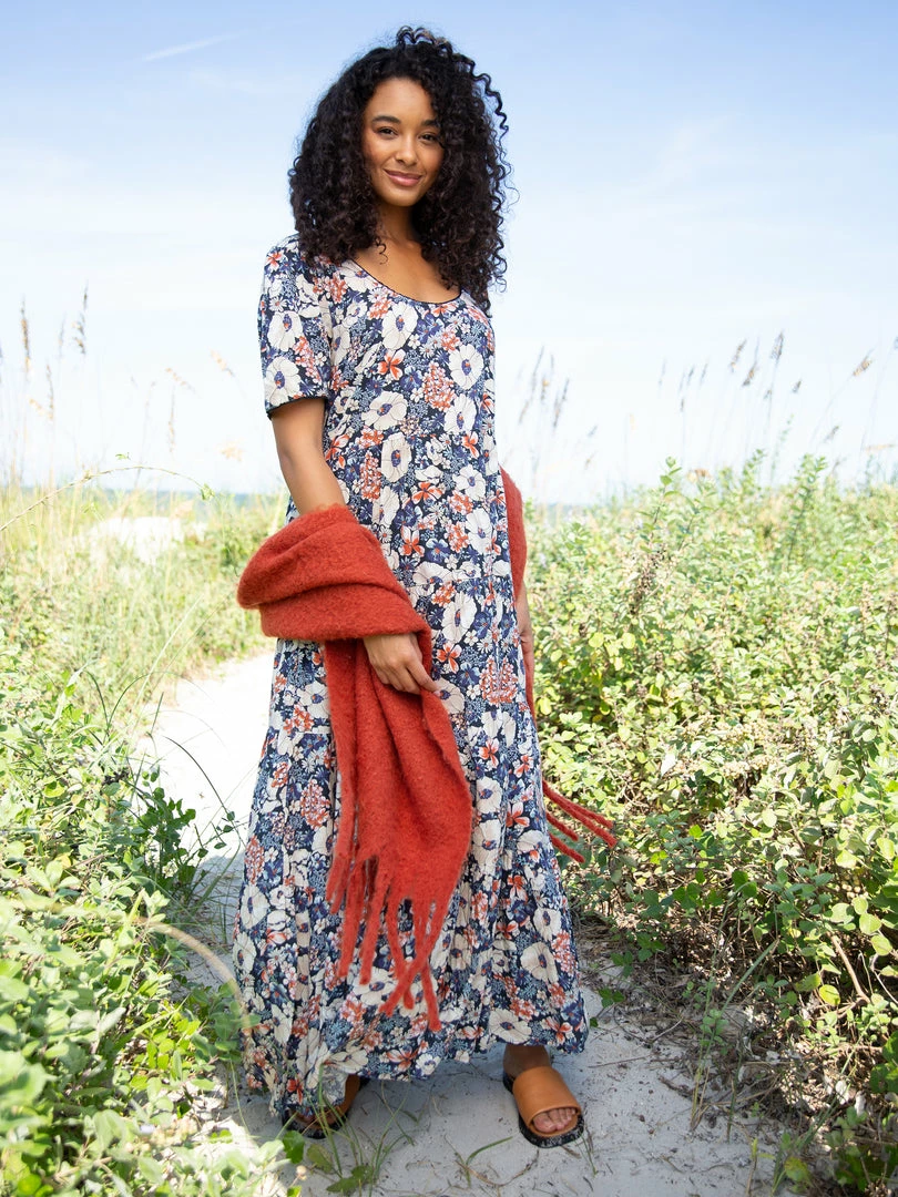 Meet the easiest dress you’ll ever wear! The Lucia Maxi Dress features the prettiest bohemian floral print, puff sleeves, a scoop neckline and dainty scallop lace trim along the neck and sleeves! The fit is super relaxed and comfy and the tiers make it so flowy and fun to wear! It’s literally the perfect everyday dress!