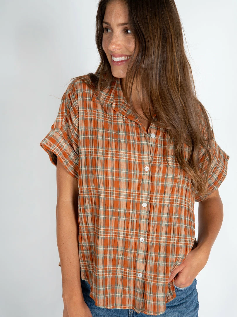 The Allie Button-Down is such a great little top! It features rolled cuff dolman-style sleeves, a full button front, a chest pocket, and crinkle texture. The oversized silhouette makes it so comfy to wear, but we do recommend sizing down for a slimmer fit! It’s the perfect top to just throw on with jeans and take on the day!