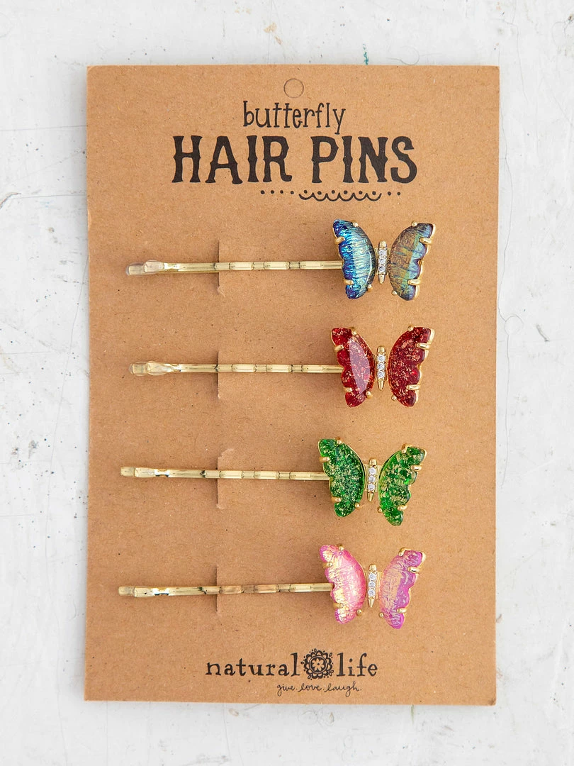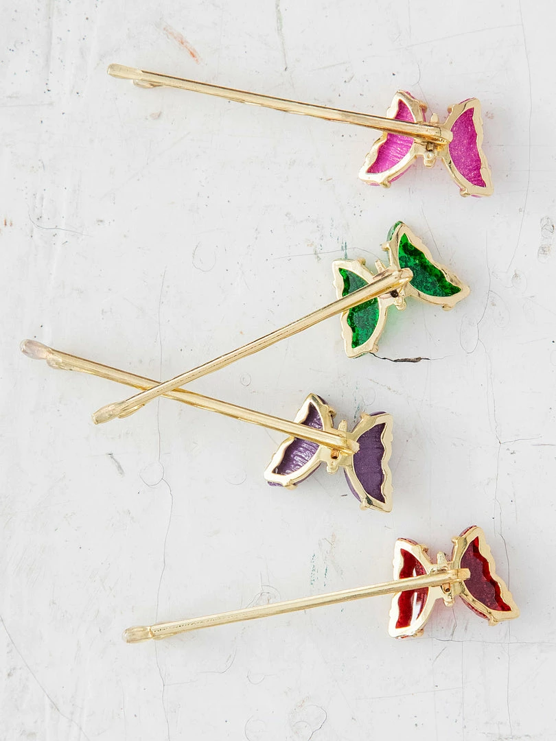 These Butterfly Bobby Pins are like little butterfly kisses for your hair! They come as a set of 4 and are perfect for holding all your wisps and keeping them out of your face. They look so cute tucked into your bun or ponytail! Wear them alone or mix and match with our other hair accessories for a fun look!