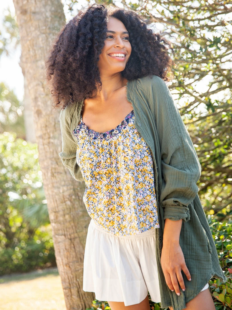 Obsessed with the Laid Back Button Down! It’s made from a cotton gauze material and is so comfy & easy to wear! It looks so good on everyone and we love pairing it with our Bike Shorts! Oh, and it even has pockets!