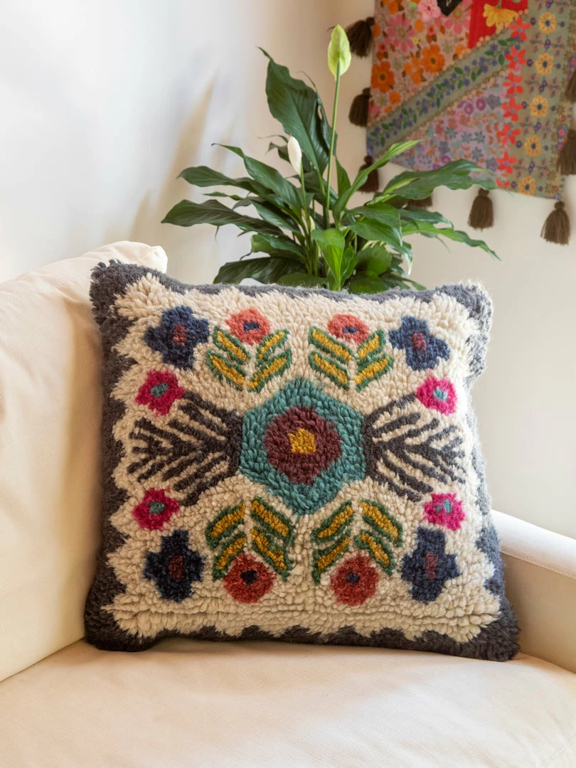 We love boho pillows! This Shaggy Wool Pillow is hand tufted with a fun design on the front and a solid cotton on the backside with a zipper closure. Whether you use it alone or mix and match it with our other pillows, it will bring a pop of color & texture to your space!