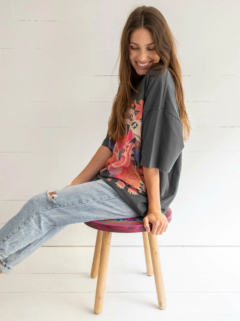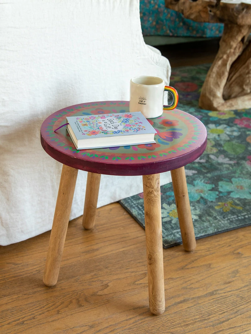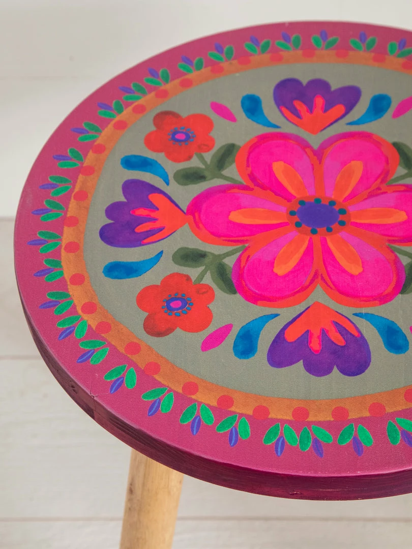 The Stool Side Table is the cutest ever! It’s made of pine wood and features a bright floral printed design on the top with stained legs. We love using it as a fun accent table, or it doubles as a stool to sit on! Inspired by our love for folk flowers… it brings a little bohemian flare to any space! Assembly is required.