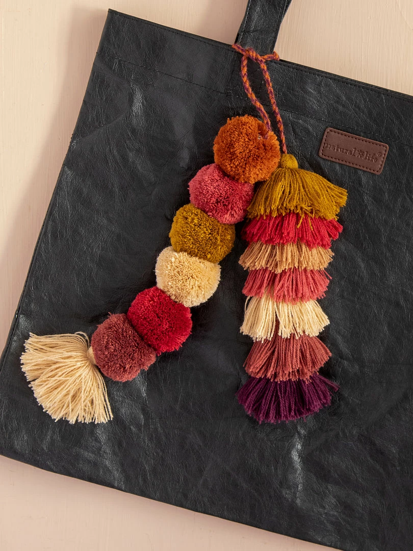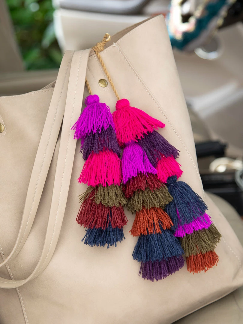 This brightly-colored Tassel Tie-On is made with natural rope and makes everything more fun! They can hang or be strung around bags, doorknobs, or your rearview mirror!