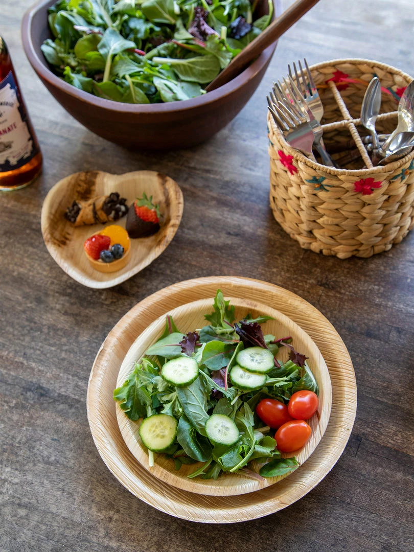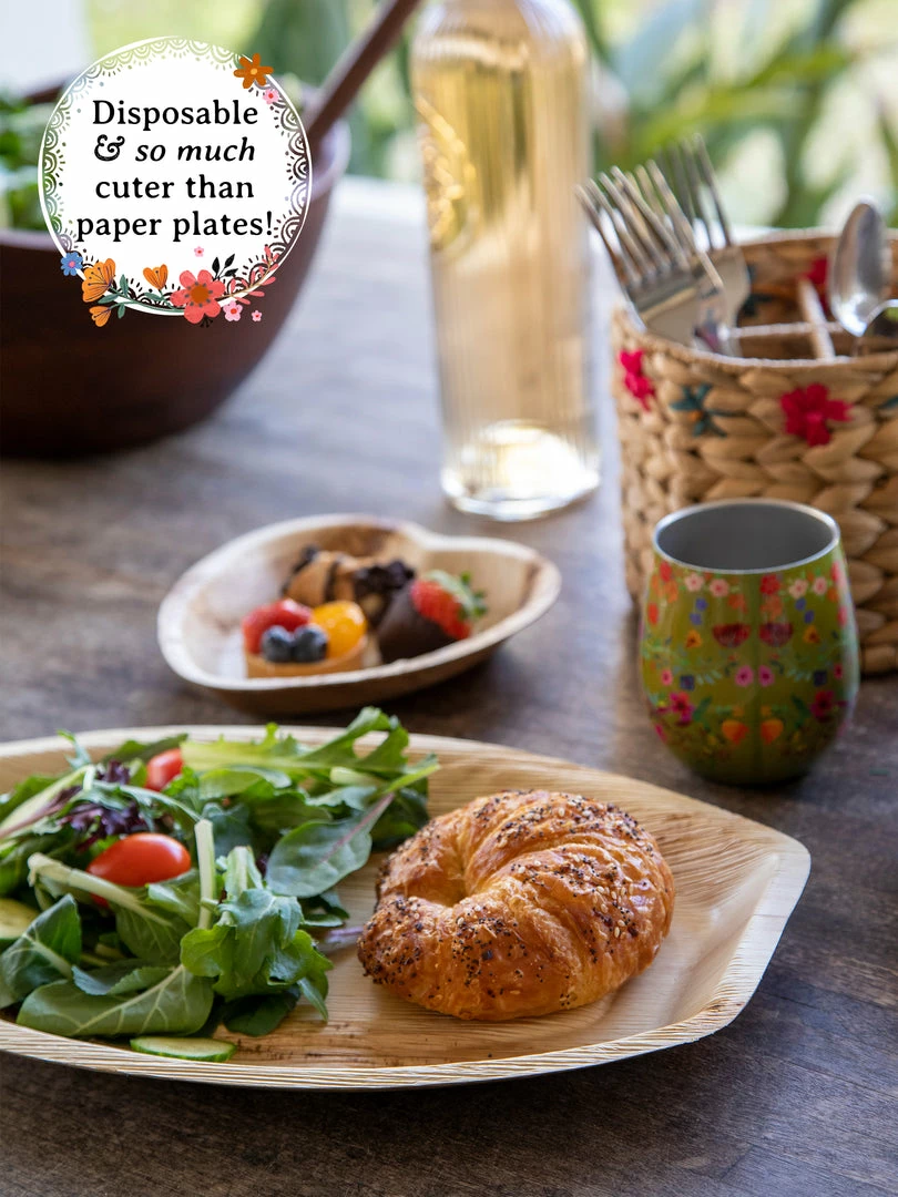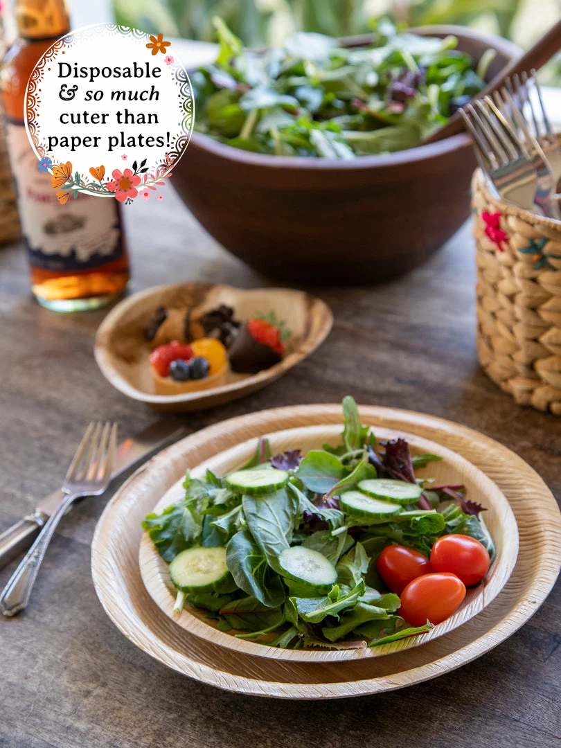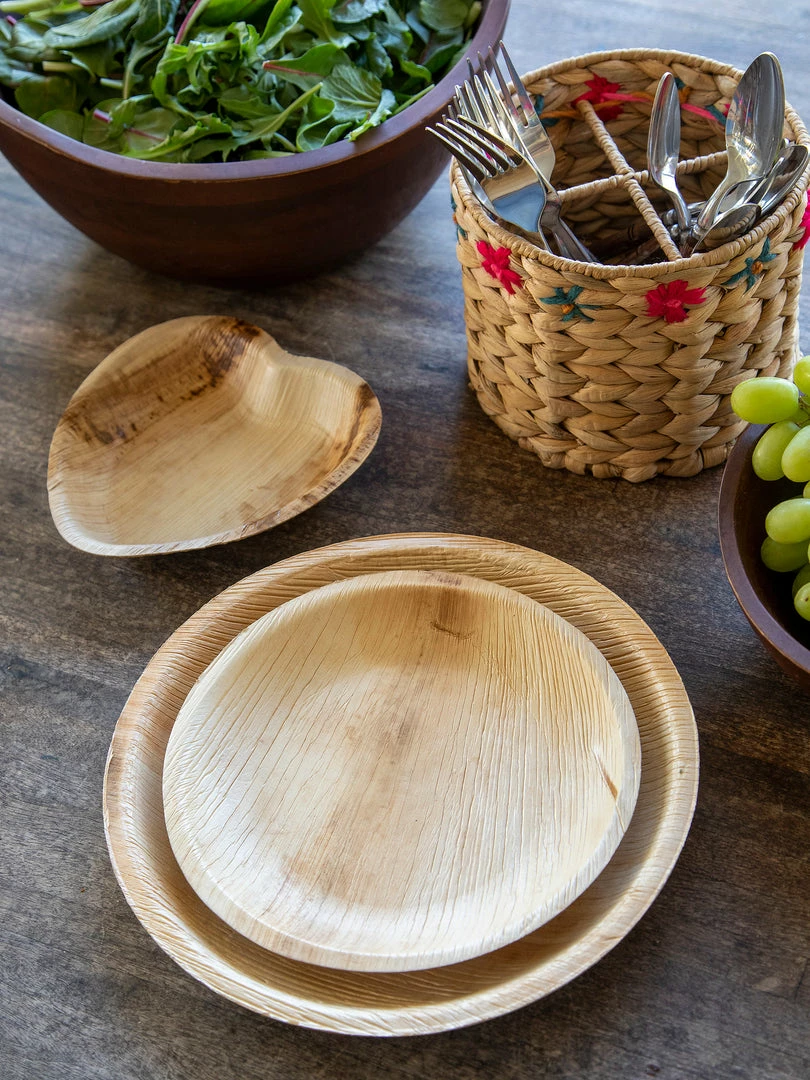 This set of 12 Palm Leaf Plates are such an awesome replacement for paper or plastic plates! They’re made from naturally shed Areca palm leaves and feature a beautiful wood like feel. We love using ours for family dinners or parties and they make great hostess gifts! The dimension of each piece may vary slightly since the product is completely natural. Plus, they’re biodegradable!