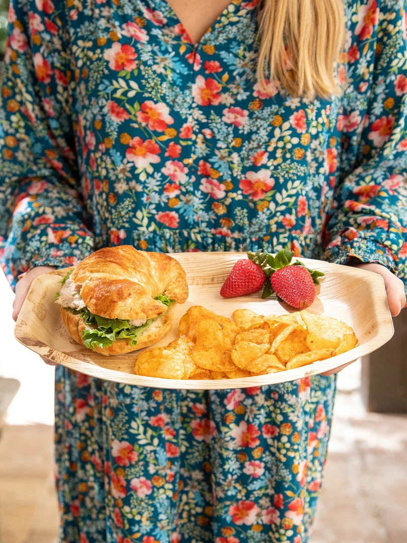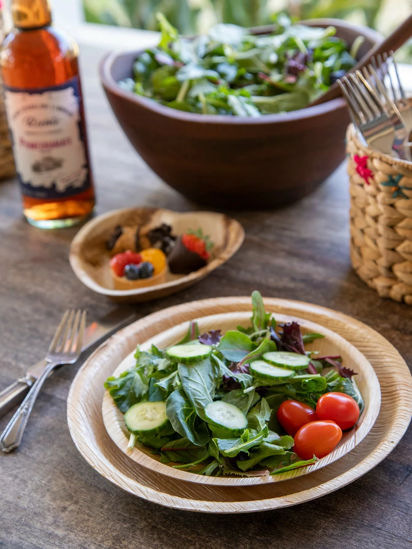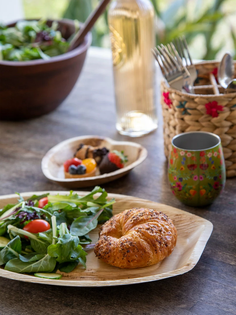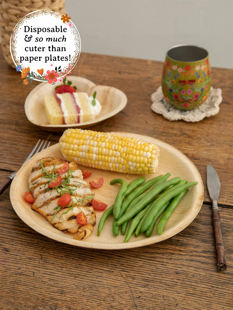 This set of 12 Palm Leaf Plates are such an awesome replacement for paper or plastic plates! They’re made from naturally shed Areca palm leaves and feature a beautiful wood like feel. We love using ours for family dinners or parties and they make great hostess gifts! The dimension of each piece may vary slightly since the product is completely natural. Plus, they’re biodegradable!