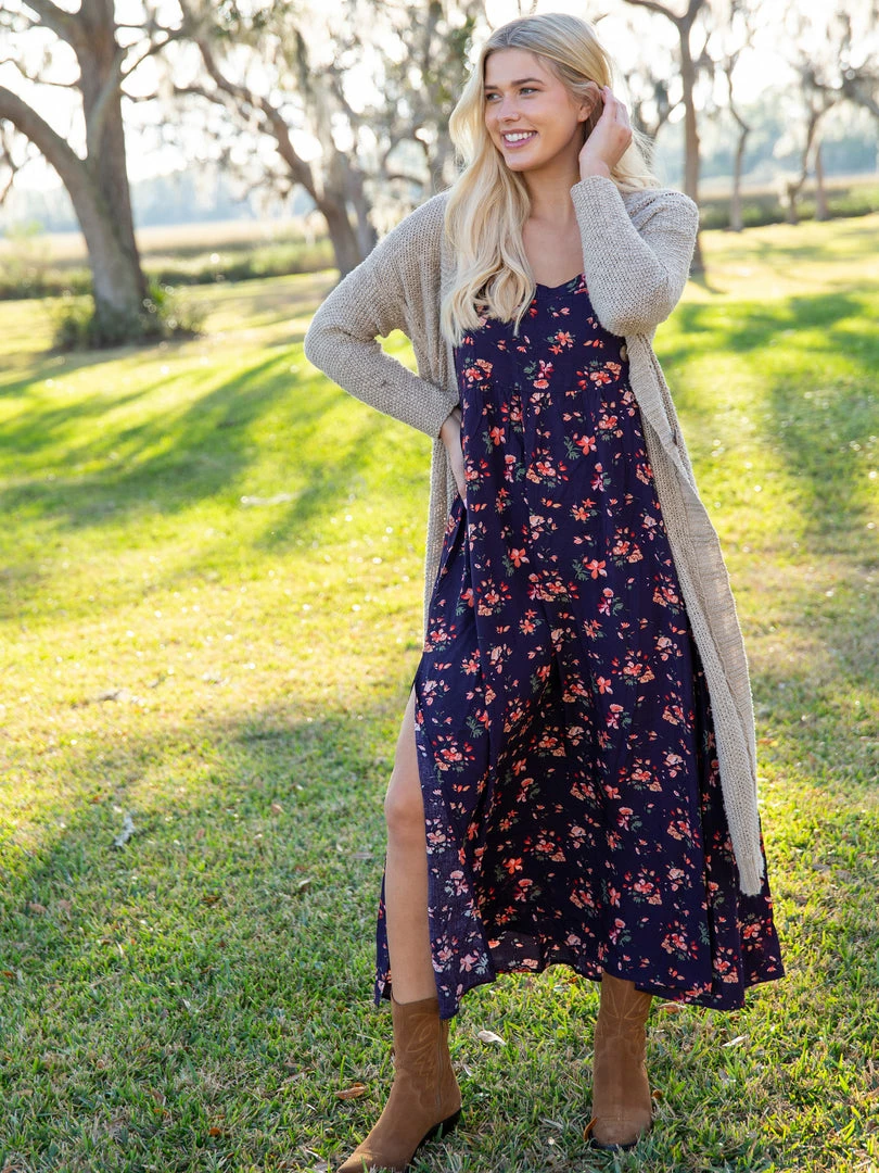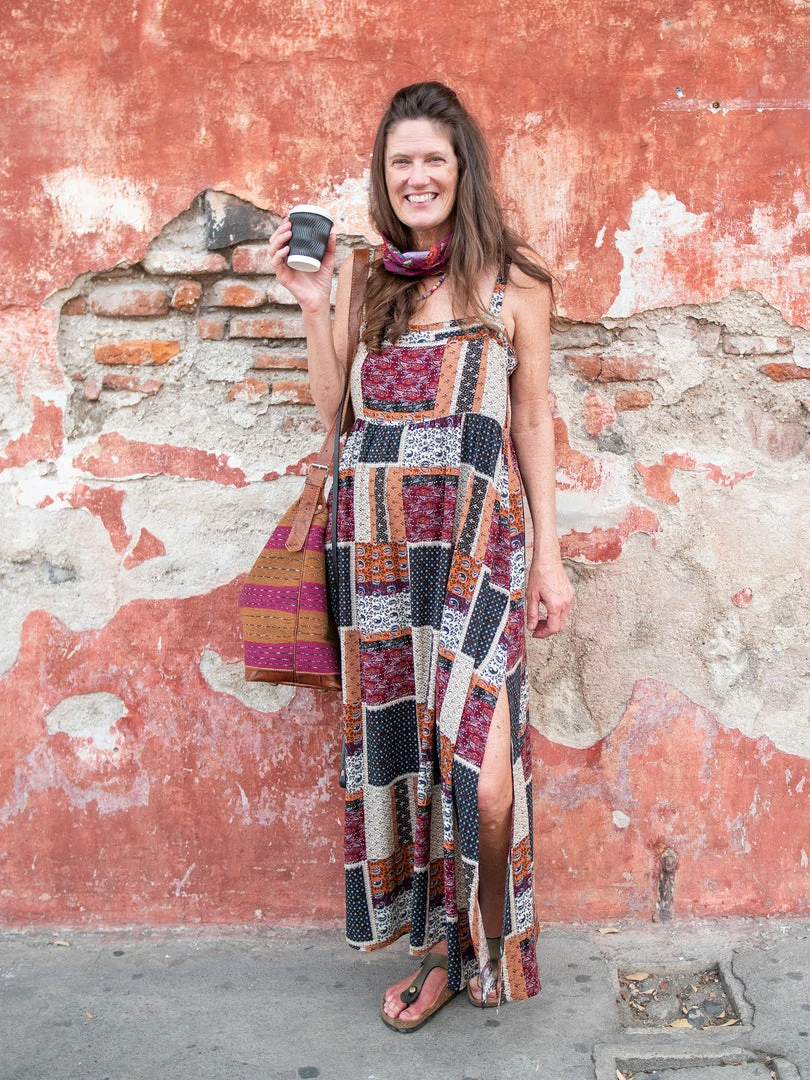 We think cute & comfy dresses are a necessity! The Patti Maxi Dress has super clean lines, but also makes your life simpler by taking the guesswork out of what to wear. Throw it on for a stroll on the beach or a quick trip to the store. It’s even the perfect piece to just lounge in the backyard for a little extra sunshine. The side slits make it so feminine and easy to walk or travel in. It features dainty covered buttons that add a delicate detail to the back. If you tend to get cold, bring along a denim jacket, which pairs perfectly with any of the Patti dress prints. You can be effortlessly elegant, yet practical everyday with the Patti maxi dress.