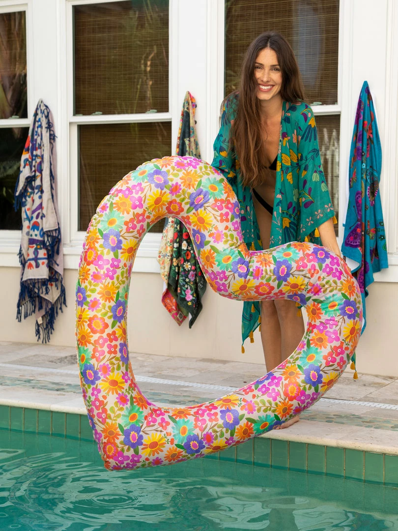 Girls just wanna have sun! This Pool Float features the cutest colorful print that’s so bright and perfect for fun days at the beach or your next pool party! It inflates & deflates so easily, we even take ours along on road trips!