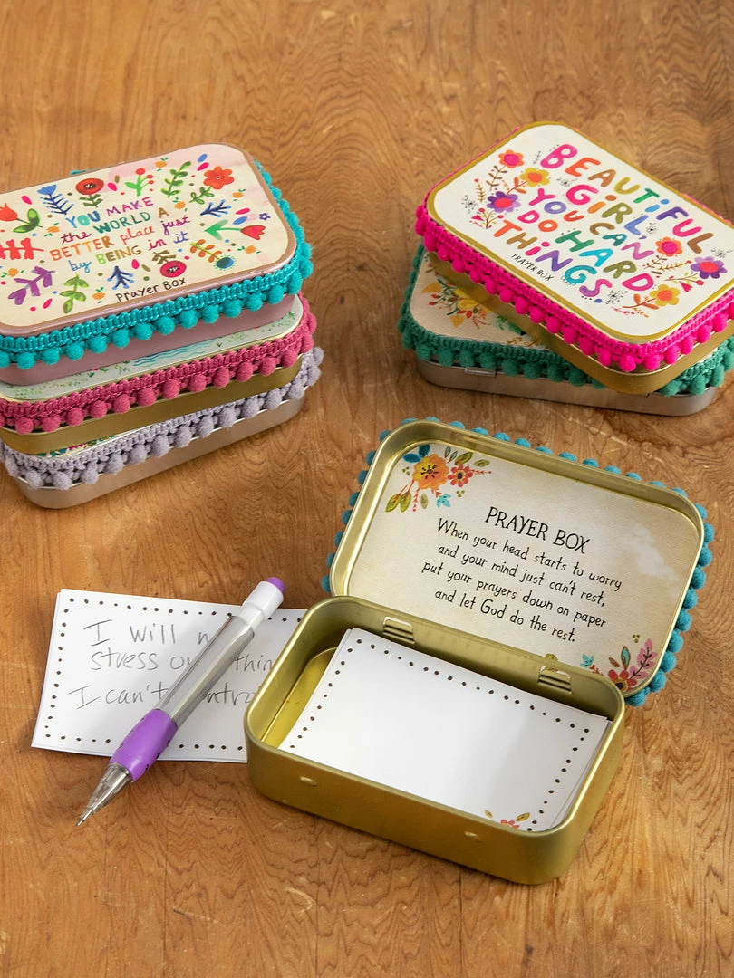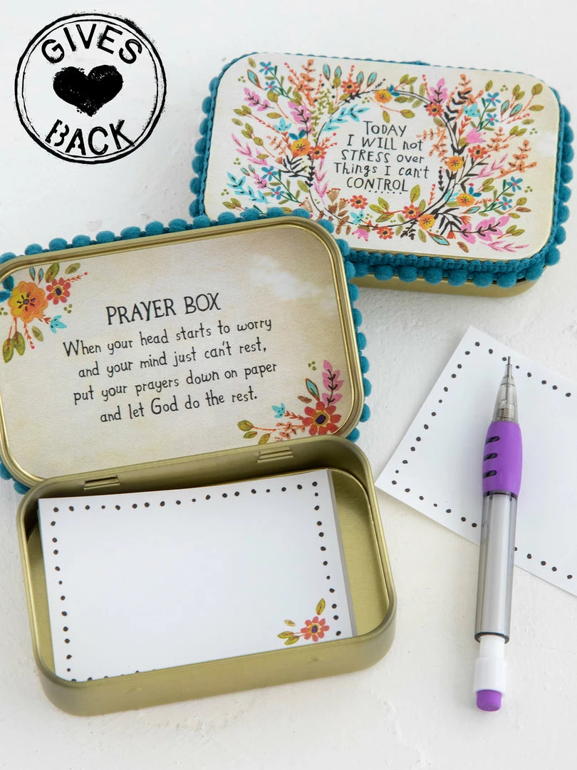 (The Will Not Stress Prayer Box is a part of our FEARLESS Collection which helps educate, empower, and reduce the stigma of anxiety disorders. A portion of proceeds from the FEARLESS Collection gives back to JACK Mental Health Advocacy. To learn more about anxiety and how to get help, visit our FEARLESS Resource Page)