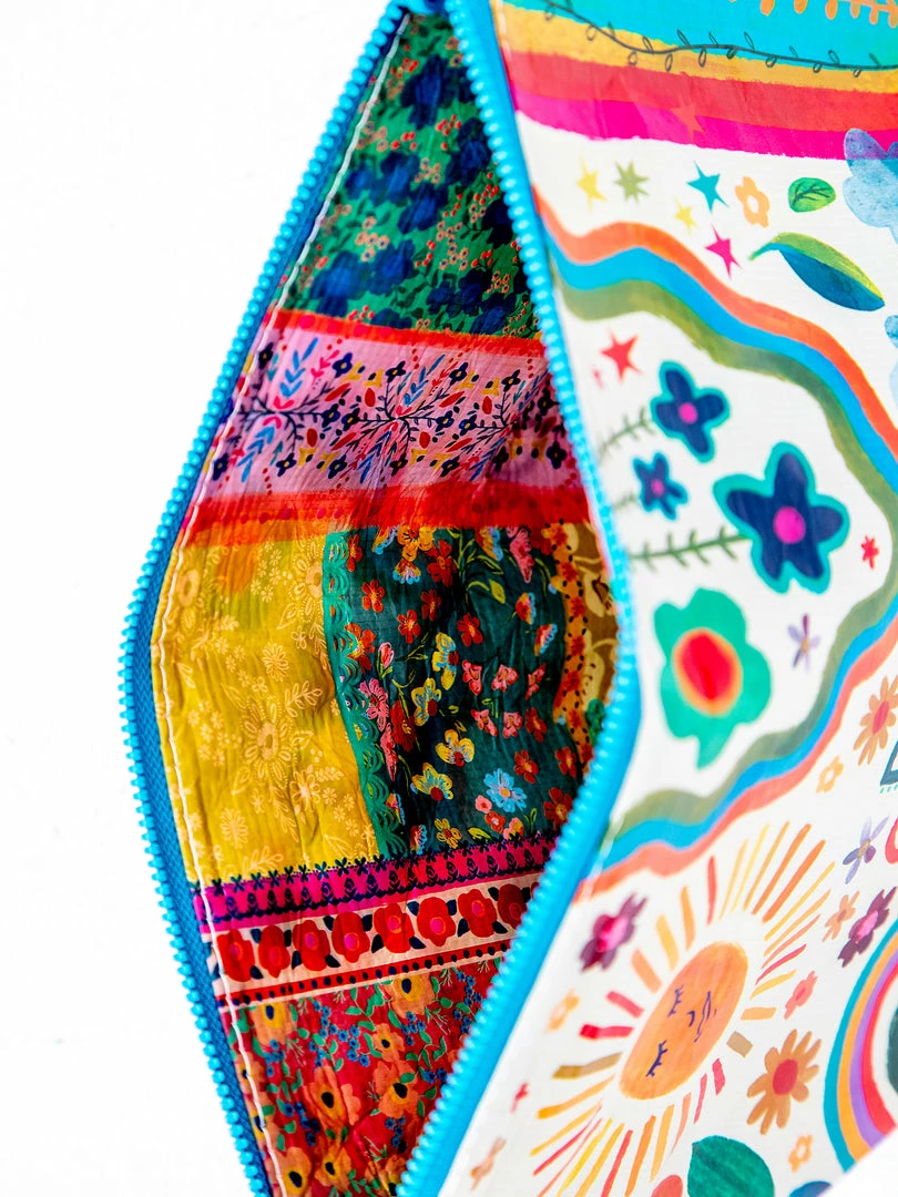 The Reversible Zip Pouch is one of our favorites! It’s made from recycled water bottles, making it so easy to wipe clean! The outside has beautiful artwork and you can flip it inside out for a fun print… it’s like two bags in one! It’s perfect for traveling, make up, sunglasses and even for toting your wet bathing suit home from the beach, it’s so versatile!