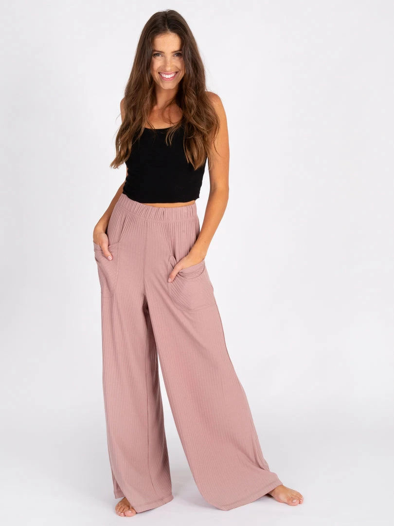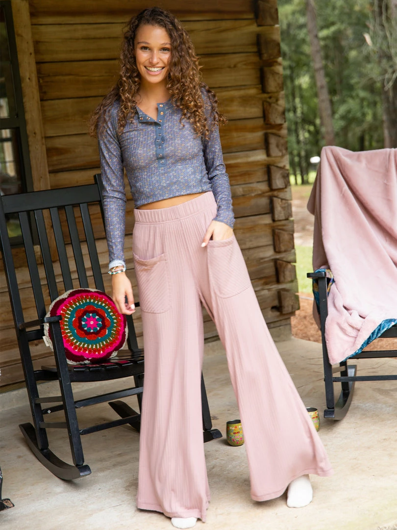 The Road Trip Pants are just so comfy! These wide leg pants are perfect for traveling, lounging or even going out and about! They feature a high waisted elasticized band, pockets and a raw edge hem. You’ll want to wear them everywhere!