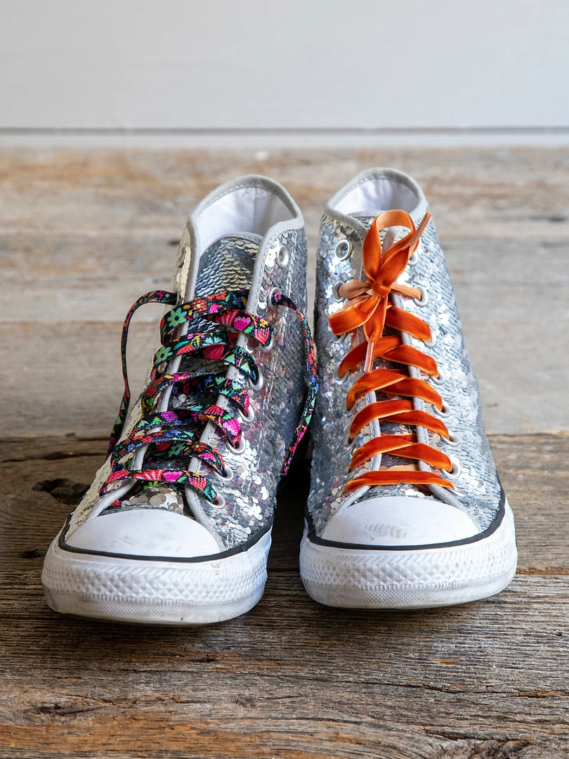 It’s the little things… like fun shoelaces! This Set of 2 Shoelaces features one velvet and one printed set of laces and are so fun to mix and match! They look soo cute with tennis shoes or combat boots, but they’ll bring any pair of shoes to life!