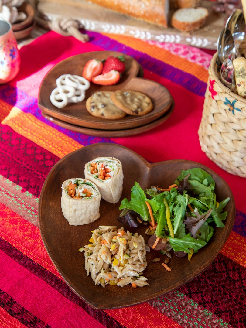 Everyone’s favorite room is the kitchen, and we love making things for it! During our global travels, we stayed at a rustic resort and they served all of our food on wooden plates and platters and they even used wooden serving spoons! They were so cool and inspired us to design something similar for our own homes! This Set of 4 Acacia Heart Plates are hand-carved and so elegant. They’re perfect for fun family dinners & hosting guests… and are so pretty, you’ll want to keep them out even when your guests go home! They’re made from real acacia wood, so they are hand wash only and each plate will be slightly different & unique.