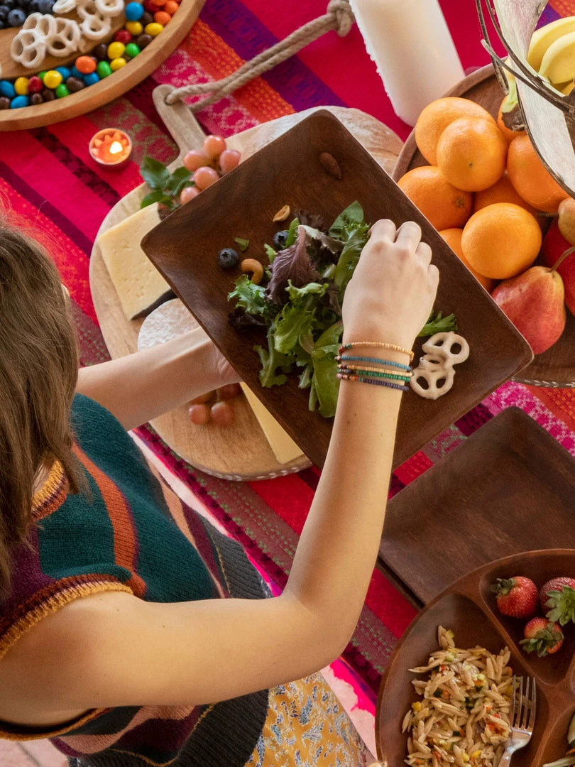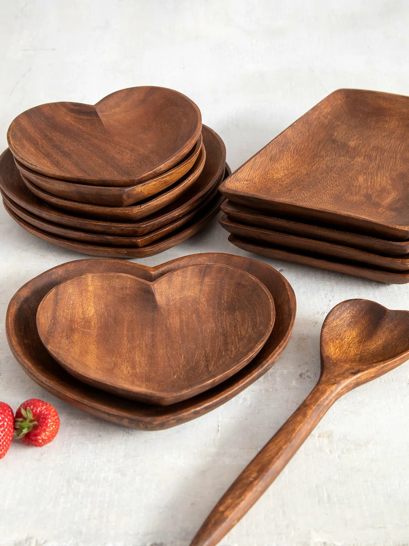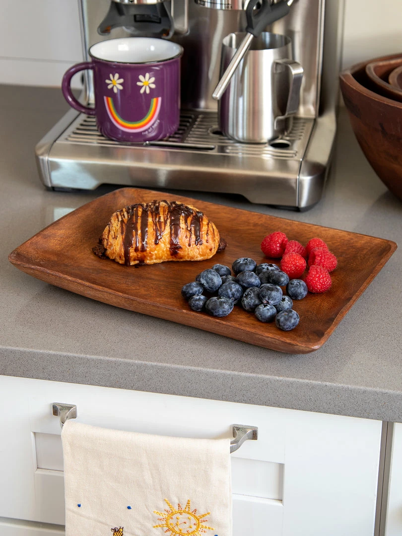 Everyone’s favorite room is the kitchen, and we love making things for it! During our global travels, we stayed at a rustic resort and they served all of our food on wooden plates and platters and they even used wooden serving spoons! They were so cool and inspired us to design something similar for our own homes! This Set of 4 Acacia Plates are hand-carved and so elegant. They’re perfect for fun family dinners & hosting guests… and are so pretty, you’ll want to keep them out even when your guests go home! They’re made from real acacia wood, so they are hand wash only and each plate will be slightly different & unique.