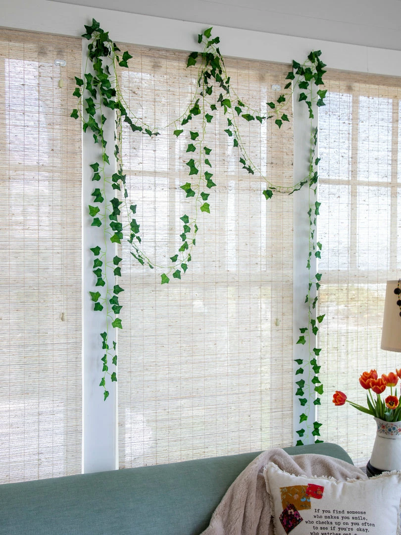 Make your space happy with this natural-looking faux Vines Garland. It comes as a set of 5 to hang from the ceiling, above your bed, in your kitchen or arranged with potted plants! It will bring a little color & life to any room!