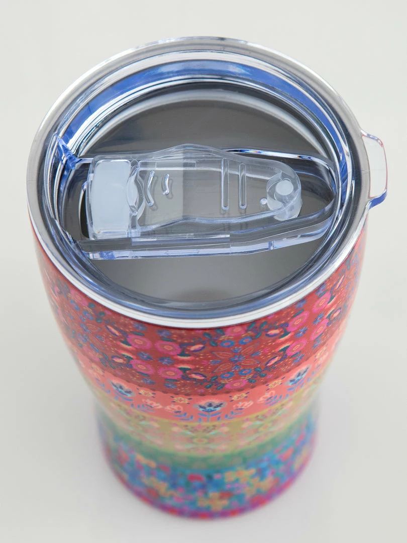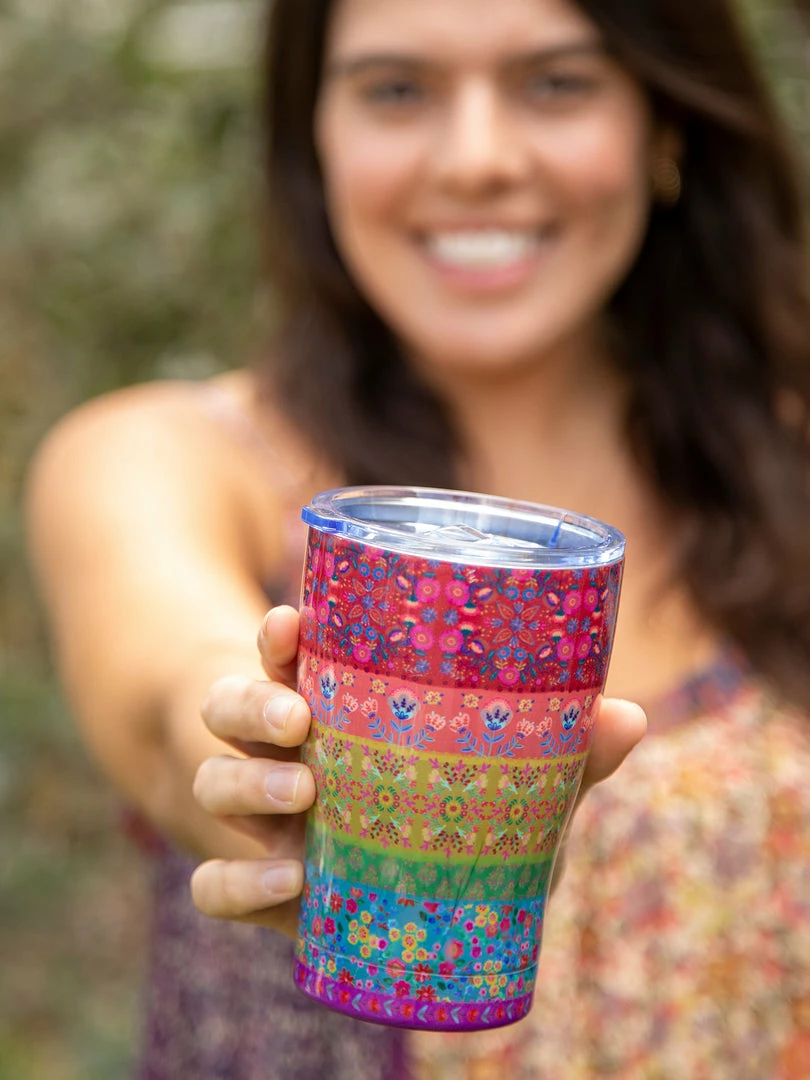 So cute and functional! Our Tumblers are BPA free, stainless steel and double-wall insulated so your drinks stay ice cold or piping hot all day long! It holds 20 ounces and has a spill-proof lid…which everyone loves!!