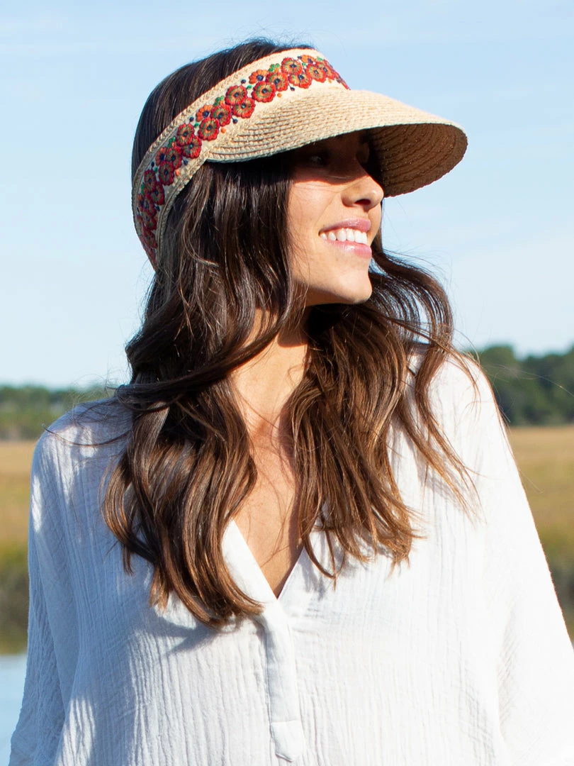 We love accessories that are cute & practical! The Trim Straw Visor features a pretty floral trim that goes all the way around and is adjustable to fit all different sized heads! It’s perfect for walking your dog, playing tennis or for the beach! You’re gonna love it!