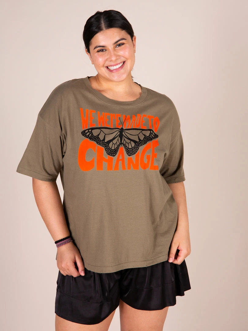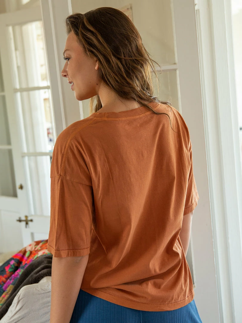 We love graphic tees! The Remi Tee is so cute with its colorful printed graphic and sentiment… you’ll feel the comfort of wearing a tee while still looking good! It features cute distressed details and dropped shoulders for a relaxed look. It looks good tied up with your favorite jeans or worn with any of our bottoms! It will be your new favorite! Compare our tee styles here!