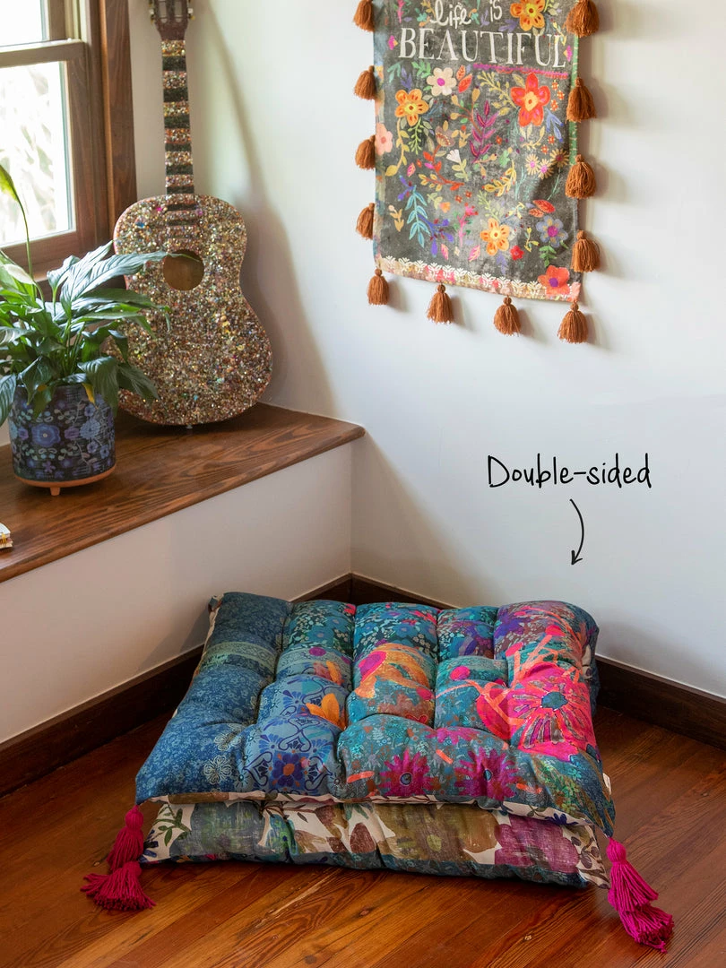 This Tufted Lounge Bed is so soft & cushy! It’s so versatile… perfect for extra seating, sleepovers, throwing over outdoor furniture, lounging next to your pool or sitting by the firepit… it can even be a bed for your pups! They’re meant to be lived on… the more you use it, the comfier it gets!