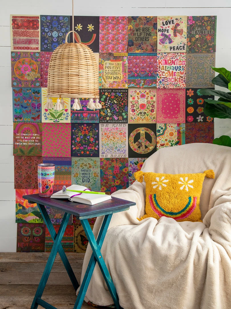 Create your very own collage wall with this Wall Collage Kit! It features 50 of the cutest and most colorful prints that you can arrange in your own assortment of color, pattern and text. It’s so fun to decorate a random wall in your living room or kitchen, behind your bed or your dorm walls! The best part is, they’re so easy to put up… the adhesive is not included, though!